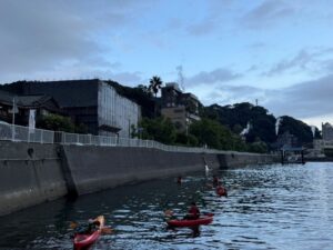 続いて、小浜温泉で体験できる楽しいマリンアクティビティのご案内です。いくつかアクティビティがあるのですが、今回は「橘湾サンセットシーカヤック体験」についてご紹介したいと思います。私たちもほとんどマリンアクティビティの経験はありません。しかし、お客様に自信をもっておすすめできるようにするために先日シーカヤック体験会に行ってきました。初心者なので大丈夫か心配もありましたが、インストラクターの方が丁寧に説明してくださるので安心して臨むことができました。徐々にカヤックを漕ぐコツをつかみ、ゆっくりのんびりと楽しむことができました。その日はサンセットの時間にちょうど雷雨だったため、残念ながら夕陽を眺めながらの体験とはなりませんでしたが、この体験を夕陽を眺めながらできたら最高だろうなぁと感じました。場所や料金など「橘湾サンセットシーカヤック体験」の詳細は下記のURLからご覧ください。家族や友達との思い出作りにおすすめです。ぜひ小浜の温泉だけでなく素晴らしい自然も味わってみてください。
