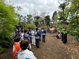 当日の朝、小浜が温泉地として発展するきっかけを作った、中国の小児科漢方医・頴川入徳(えがわにっとく)師翁の碑がある傳明寺(でんみょうじ)に、温泉関係者がお詣りします。入徳氏は、1650年頃に渡来し、偶然訪れた小浜に温泉があることを知り、人々に温泉が病気の治療に有効なことを教えた、と伝えられている、小浜温泉にとって、とても重要な人物です。