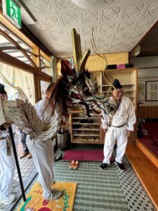 道行きパレードが終わった後も、大蛇(おろち)が旅館や商店などに「商売繁盛~!」とのかけ声とともに練り歩きます。